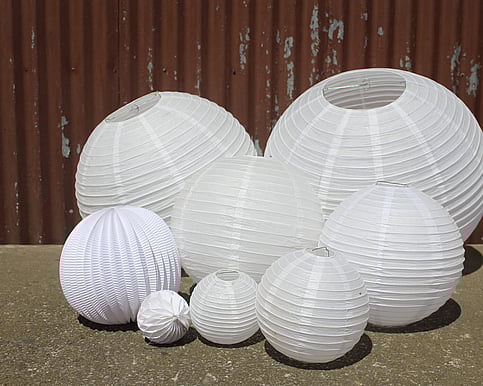 Paper laternsWhite paper laterns of various sizes and styles. From 0.50c