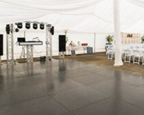 Black wooden dance floor1.2m squares ply wooden which are screw together to make up a 4.8m x 7.2m dance floor. Comes on own trailer for easy collection. 2 available $450