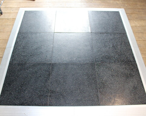 Black sparkly dance floorBlack plastic dance floor. Needs to be set up on a flat surface. Each 50cm x 50cm hooks onto each other. Priced per sq. metre. 50metres available.
