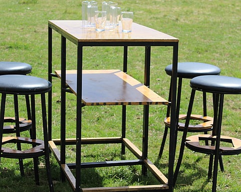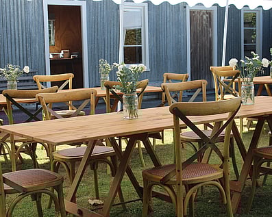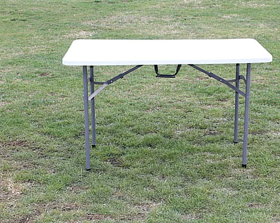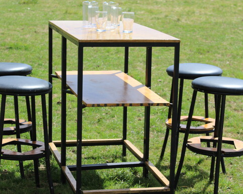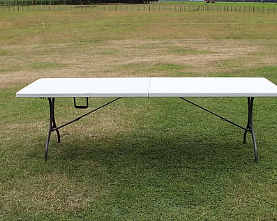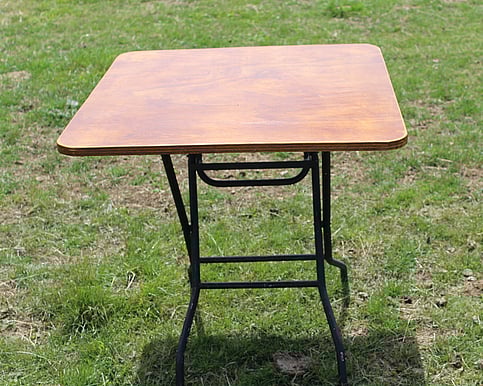 Small ply top table80cm x 80cm Wooden top and black folding legs. Seats 2-4. Can be used for signing the register, cake table or entrance displays. 9 Available $12.00 each