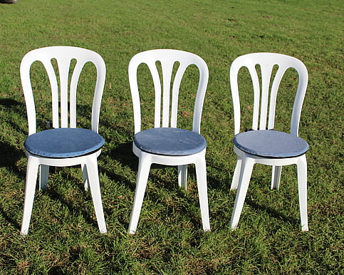 Rounded Cafe Chairs Sturdy white plastic cafe chairs. 325 available $4.50 each Seat cushions available seperatley. $2.50