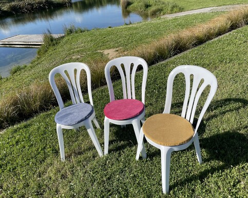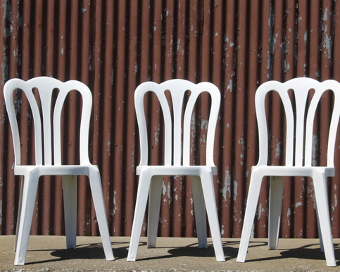 Rounded Cafe Chairs Sturdy white plastic cafe chairs. 325 available $4.50 each Seat cushions available seperatley. $2.50
