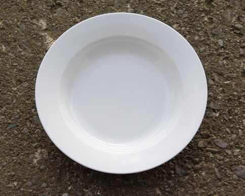 Classic white china dessert/soup bowl. Shallow with wide rim. 90c each